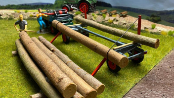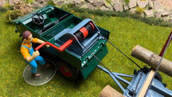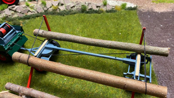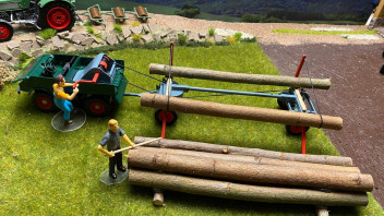 der Holzanhänger mit dem U 411 ist ja ein Spitzen-Modell. - Kannst Du mit der Kurbel die Baumstämme auf den Hänger ziehen? Das wäre für mich das i-Tüpfelchen.