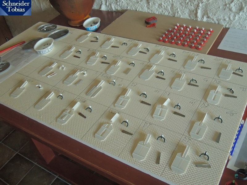Viele Teile sind inzwischen zusammengebaut; auch die zeitaufwendigen Anbaurahmen sind bis auf die Bolzen komplett.