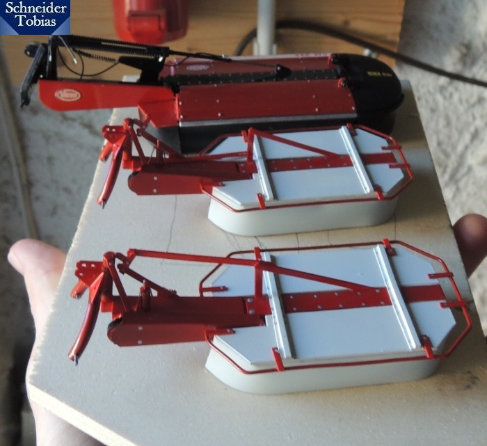 Dann mache ich die Verwirrung mal komplett und stelle die letzten beiden Mähwerke vor. Nein, verwirren möchte ich mit den Mähwerken nicht. Es handelt sich immer um Mähwerke mit der gleichen Arbeitsbreite und einem ähnlichen Grundaufbau. Es gab/gibt sie von verschiedenen Herstellern, was ich eben auch in 1:32 umgesetzt habe.