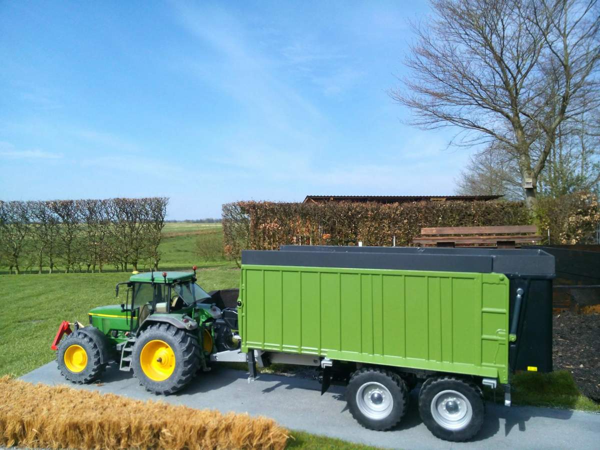 Es gibt etwas Neues aus meiner Bastelbude!Einmal ist mein Fliegl ASW 271 fertig,dann habe ich einen John Deere 7810 zum Walzschlepper umgebaut und die 4 Meter Kuhn Kreiselegge habe ich auf 3 Meter gekürzt und in Lemken blau lackiert! -