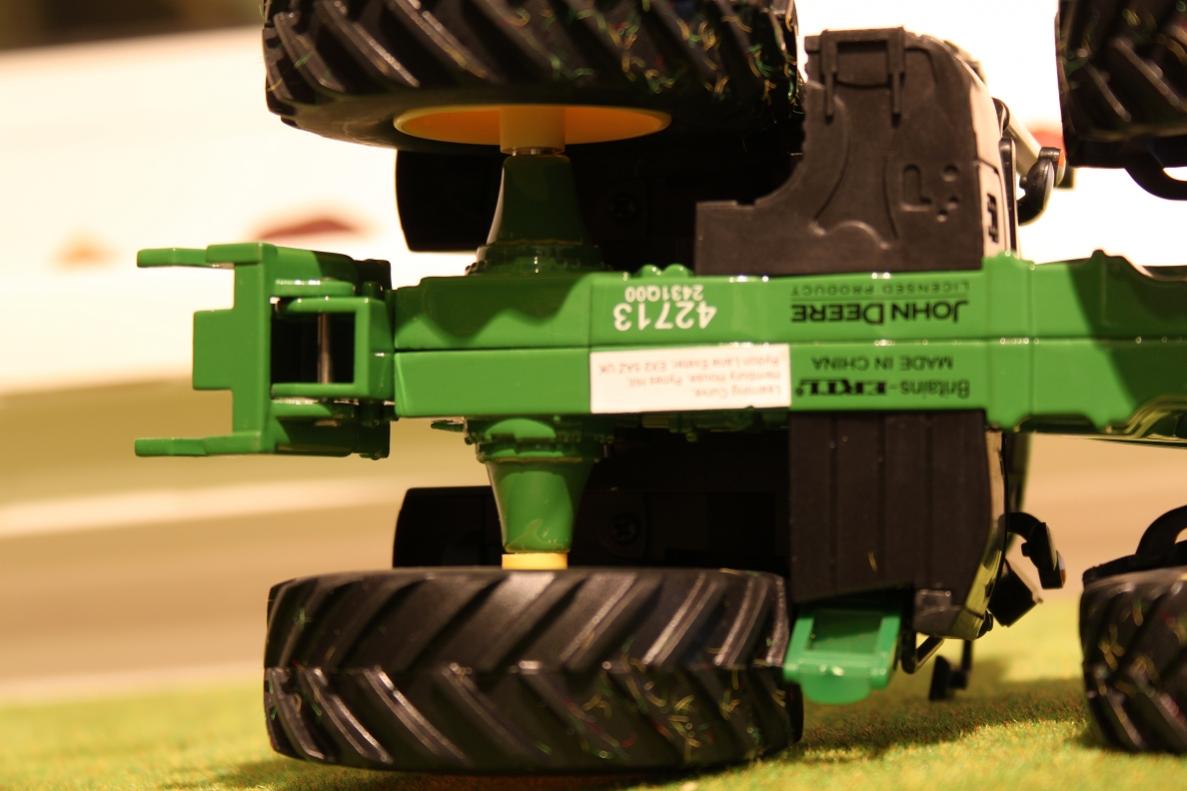 Ansicht von Unten, die Räder stehen zu weit außeinander. Im Gegensatzt zum Schuco Fendt724 ist es hier nicht so leit die Achse zu kürzen da im Radkasten zwei Schrauben im Weg sind. (2Bild)