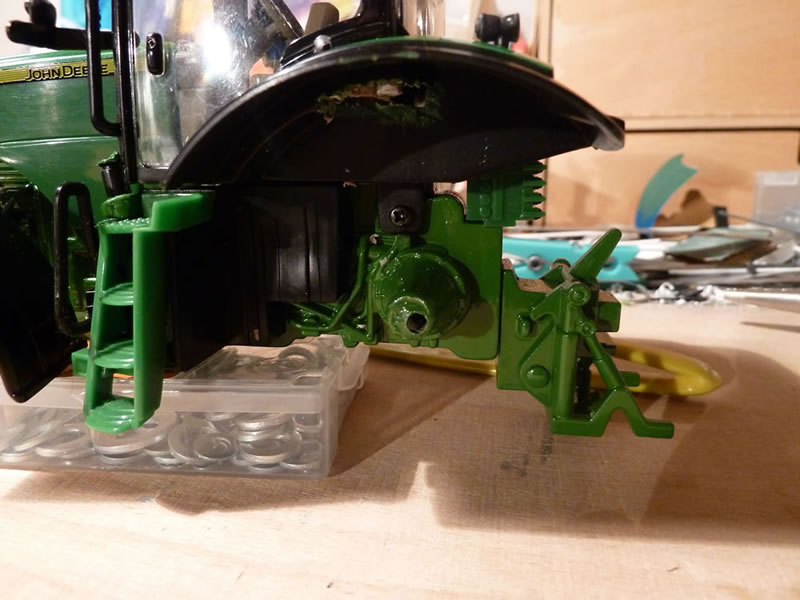 Hinten habe ich die Achsschenkel gekürzt und exentert, der Schlepper hat jetzt eine Breite von 297cm.
