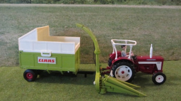 Stimmt, es gibt ja noch den Claas von Siku. Aber der wäre mir auch optisch zu groß für den kleinen Häcksler. Da bräuchte man in Echt aber etwas mehr Schlepper davor...