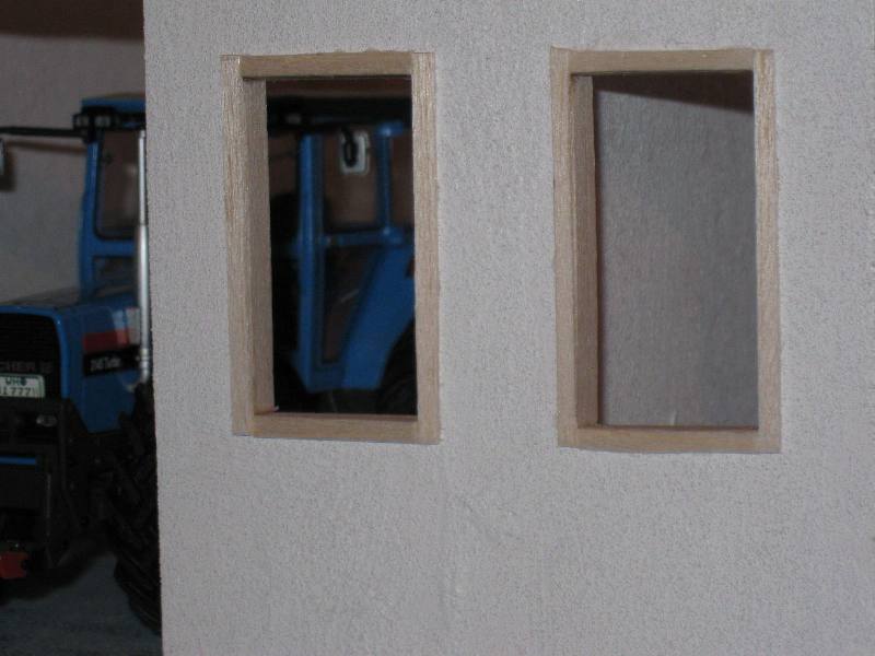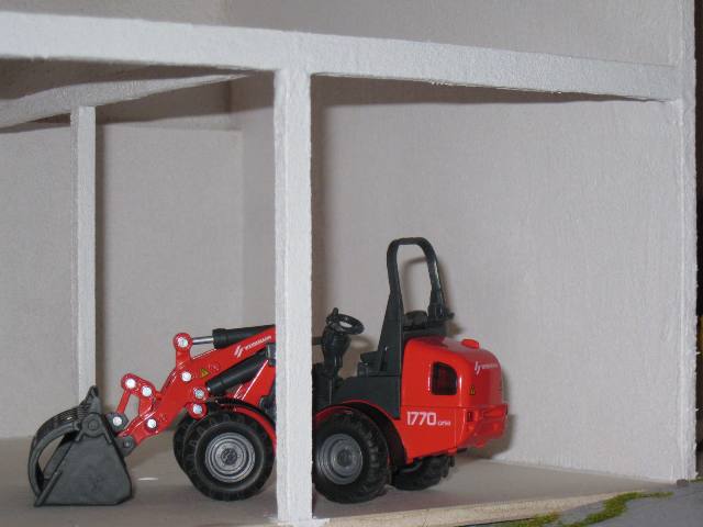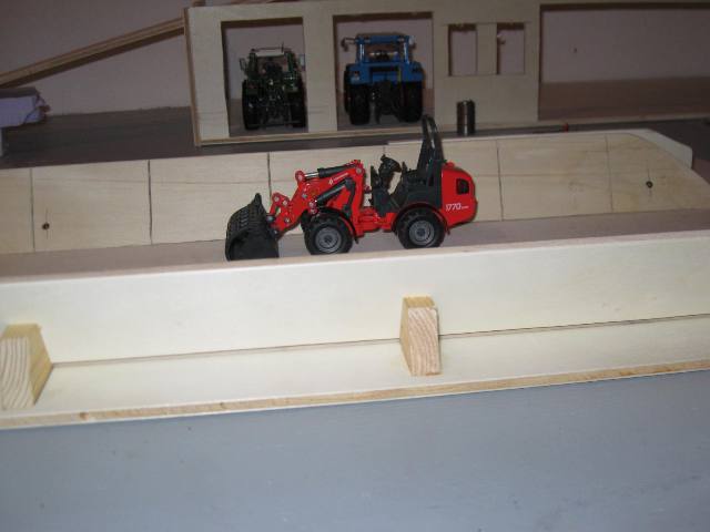 Ich werde auf einer Grundplatte mit 65cm Länge und 30cm Breite ein Gebäude errichten, das "im Erdgeschoss" Platz für zwei Garagen mit Toren plus einen Unterstand für weitere Maschinen bietet. Die drei Bereiche sollen durch Mauern voneinander abgegrenz werden (Türen sind nicht ausgeschossen ;)) und sich in ihrer Einfahrtshöhe - wegen Relief - leicht unterscheiden. Das Erdgeschoss wird komlett "gemauert". Darauf aufbauend, also dann im ersten Stock, soll eine Tenne entstehen, die über eine Treppe und eine Auffahrt zu ereichen ist. Dieses Geschoss besteht hauptsächlich aus einer Holzkonstruktion.
