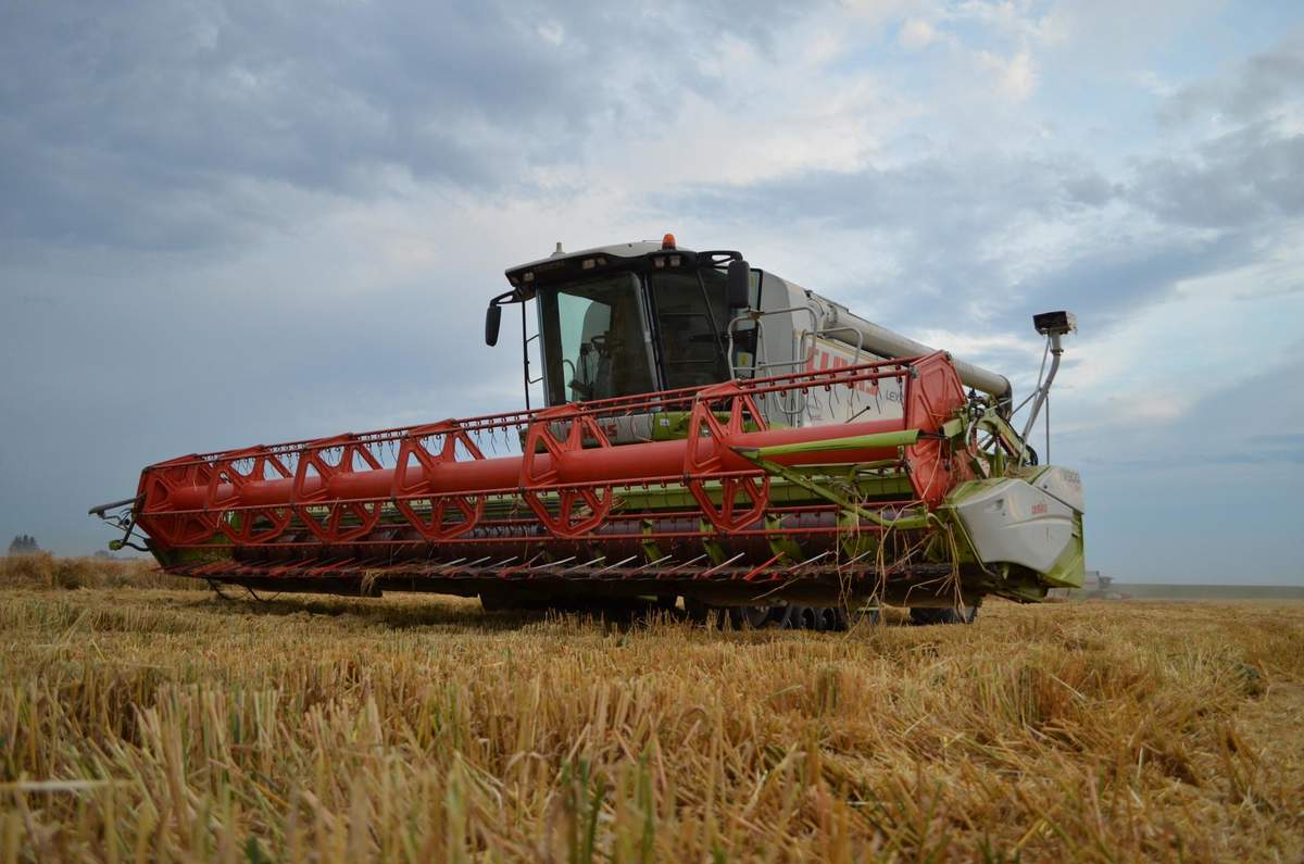 Der Betrieb hat 900 ha und die Mähdrescher de LUs sind gerade nicht im Einsatz gewesen deshalb sind sie alle auf einem Schlag gewesen
