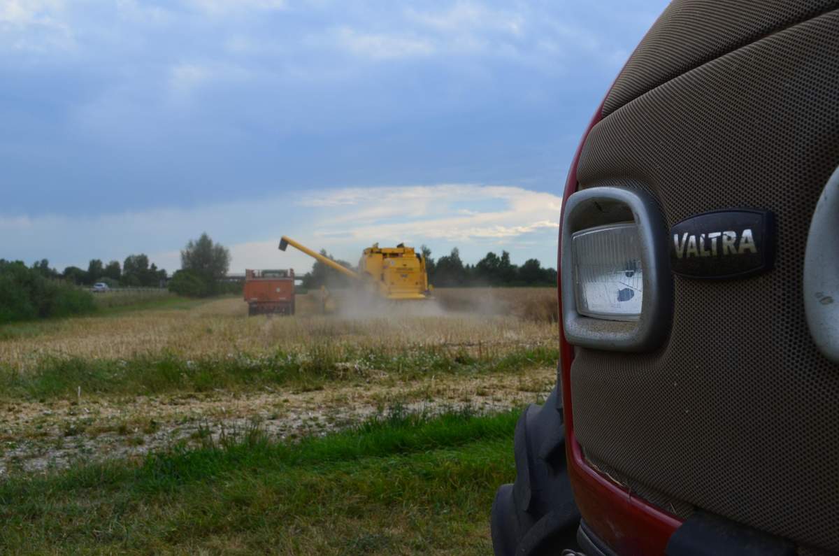 Der Betrieb hat 900 ha und die Mähdrescher de LUs sind gerade nicht im Einsatz gewesen deshalb sind sie alle auf einem Schlag gewesen
