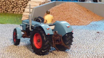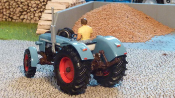 ich habe dem Eicher gleich mal die Resin Reifen gegen Gummi getauscht und einen Lenkbare Vorderachse verbaut, einen Funktionsfähige HH hat er auch gleich bekommen. Leider habe ich noch nicht das passende braun grau vom Rahmen, muss wohl noch mal alles lackiert das die Achsen HH und Rahem zusammen passen.