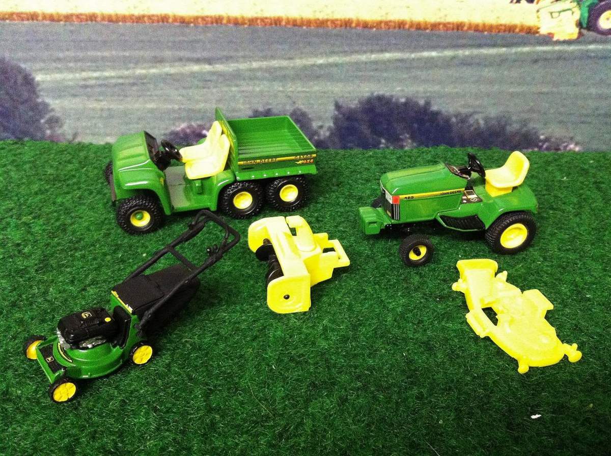 Ich wollte normalerweise nur den ultra seltenen 1:32 Ertl John Deere Rasenmäher haben, aber dann gab´s den 3.ten Gator und den 2.ten JD Aufsitzmäher 425 mit Zubehör noch dabei.