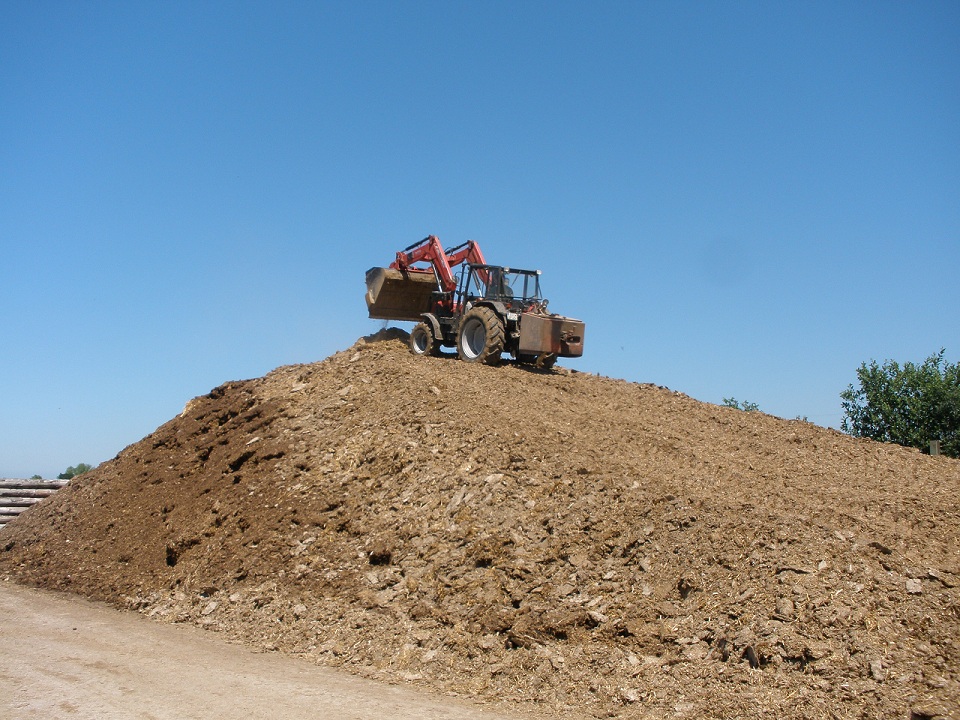 Der Mist ist von 160.00 Hähnchen. Der wird verdichtet damit der sich nicht erwärmt. Der liegt das ganze Jahr dort. Das sind ca. 1.100 - 1.200t pro Jahr.