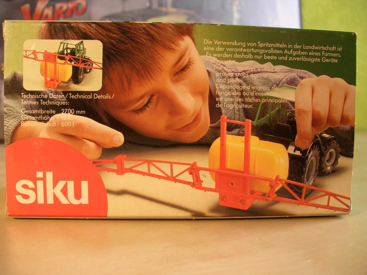 Eine SIKU Feldspritze die 2 mal vorhanden ist leider 1 mal Kaputt. Ich werde sie mir aber noch einmal Kaufen da ich weiß wo noch eine Originalverpackte für 5,50 Euro zum Verkauf steht.