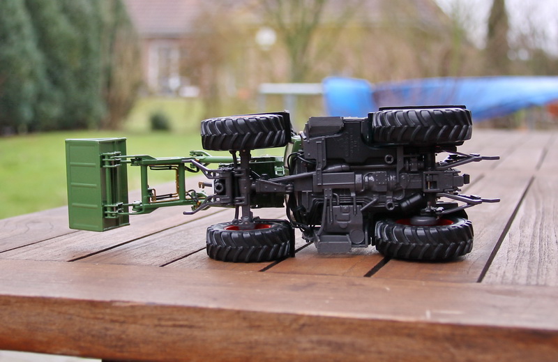 Räder hinten sind schief und eiern, Frontladerschaufen und der Frontlader selber sacken herunter. Leider sind keine Schrauben zum anziehen verbaut . Ich finde die Schaufel ist zu klein das passt überhaupt nicht zusammen auch wenn Fendt so eine kleine Schaufel im Programm hat/hatte!