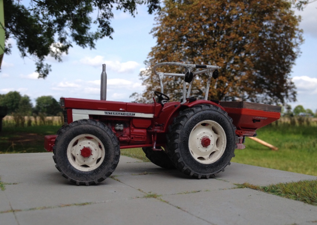 Mein IHC 1046 mit Düngerstreuer unter freiem Himmel.