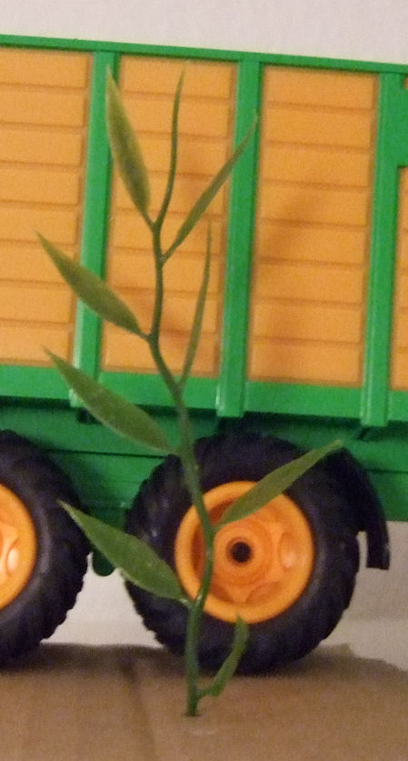 Die einzelne Pflanze ist ungefähr 13 cm hoch. Die "Maispflanzen" sind in zwei Grüntönen an einem Minibambus angebracht (siehe Foto).
