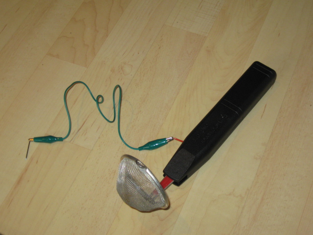 ...aber er funktioniert und um das geht's mir! Das Verbindungsstück mit den Krokodilklemmen wird noch geändert...war nur provisorisch für den ersten Test.;)