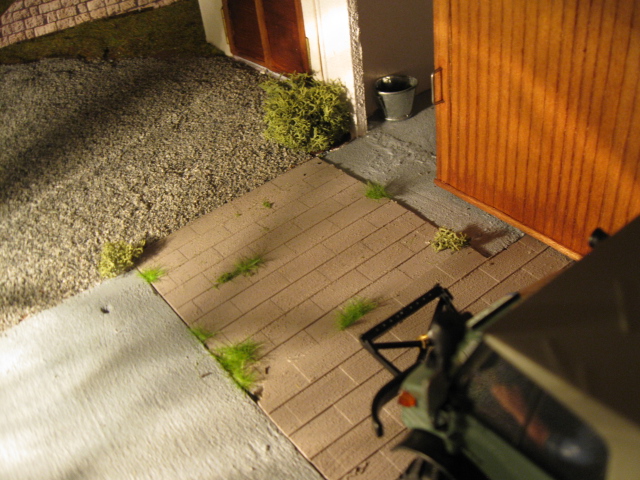Sie bestehen aus drei Strukturplatten. Diese habe ich mit einen Farb-Sandmischung bepinselt und zuvor einige Plattenelemente zerstört, da sie ja nicht mehr neu aussehen sollen. Der unschöne Fleck auf der rechten Platte ist mittlerweile entfernt.