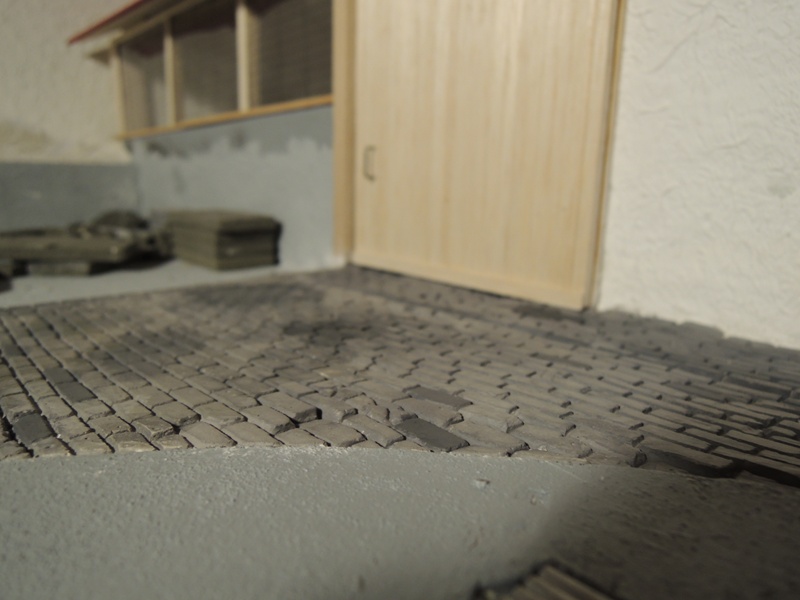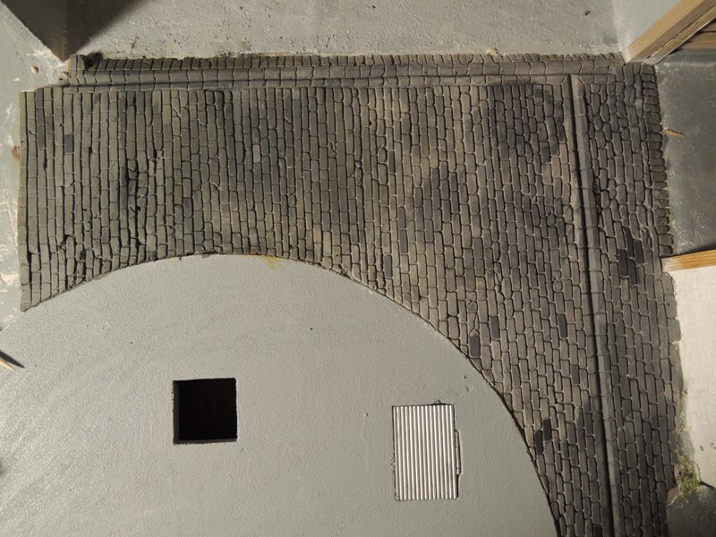 Daneben habe ich noch die zu schotternde Fläche "grundiert" und dabei auch den Schacht ausgefugt und bepinselt. Die Gülle folgt natürlich auch noch.