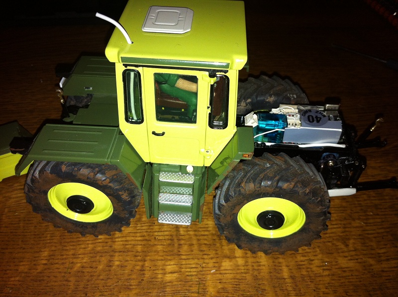 Und das ist der aktuelle stand. Servos für HH FH und Lenkung sind verbaut, ebenso der Fahrantrieb. Gemacht werden muss noch einiges, die Unterlenker müssen noch mit den Servos verbunden werden, die Haube muss noch ausgefräst werden, einige Kabel müssen noch verlegt werden...