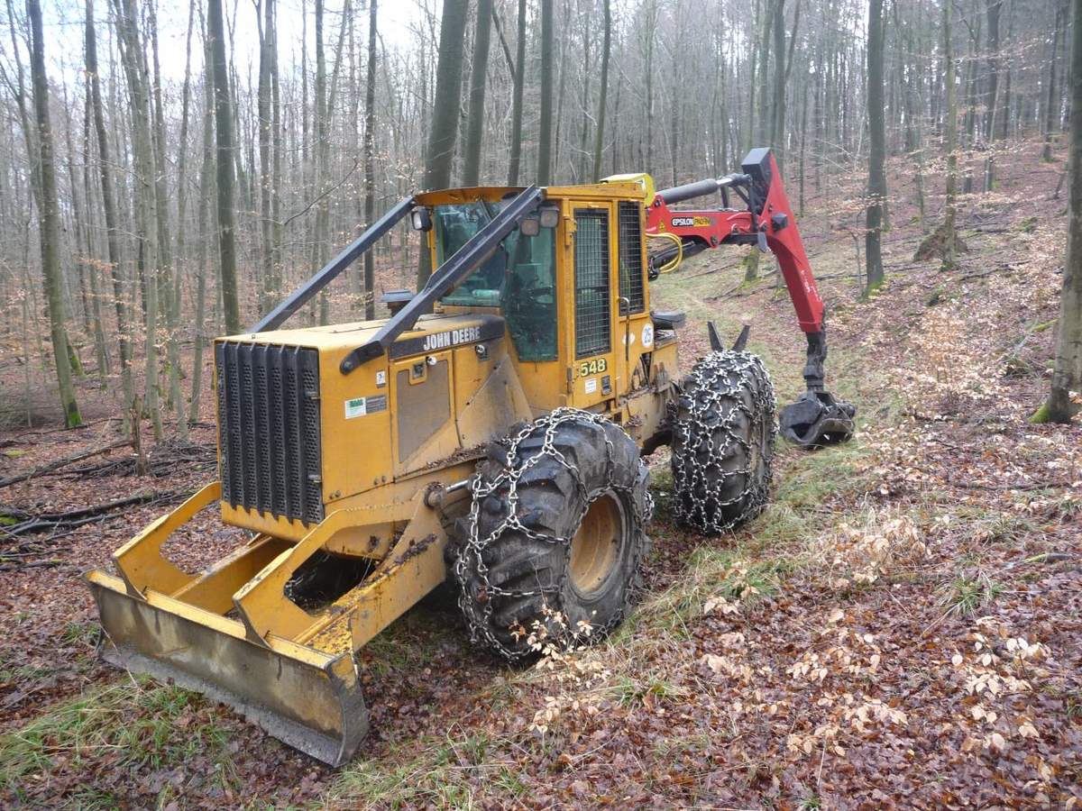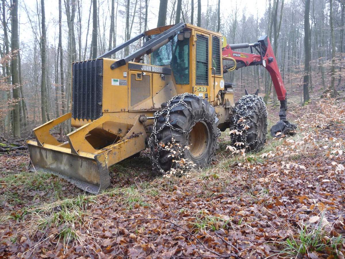 Hier ein John Deere 548 Skidder (Langholzrückemaschine)