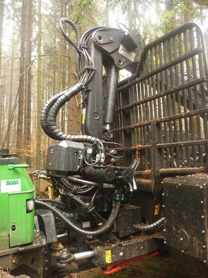 Dieser Skidder ist auch ein Spezialumbau der Firma Haas. Er hat einen Palfinger Epsilon Rückekran bekommen sowie eine Ritter Doppeltrommelwinde.