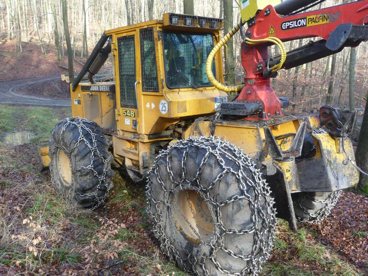 Hier ein John Deere 548 Skidder (Langholzrückemaschine)
