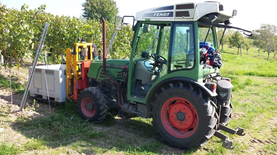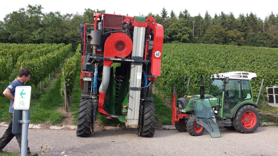Sehr schöne Bilder, auch mit den Erklärungen dazu. Interessant wie weit ein Traubenvollernter einlenken kann.
