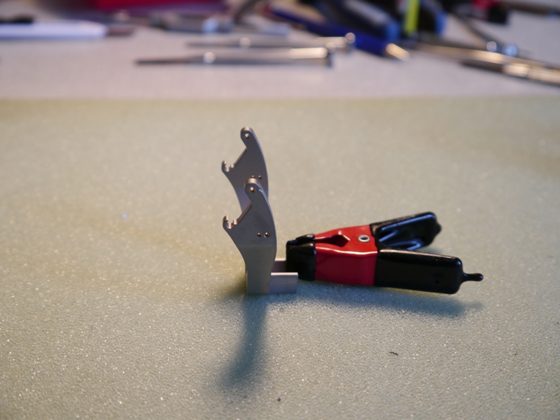 Ich hatte erst versucht die originale Wiking Konsole so zu ändern, so das ich nur noch die Anlenkung für die Schwinge neu machen muss, aber der Versuch ist aufgrund des komischen Gußes der Wiking Teils kläglich gescheitert.
