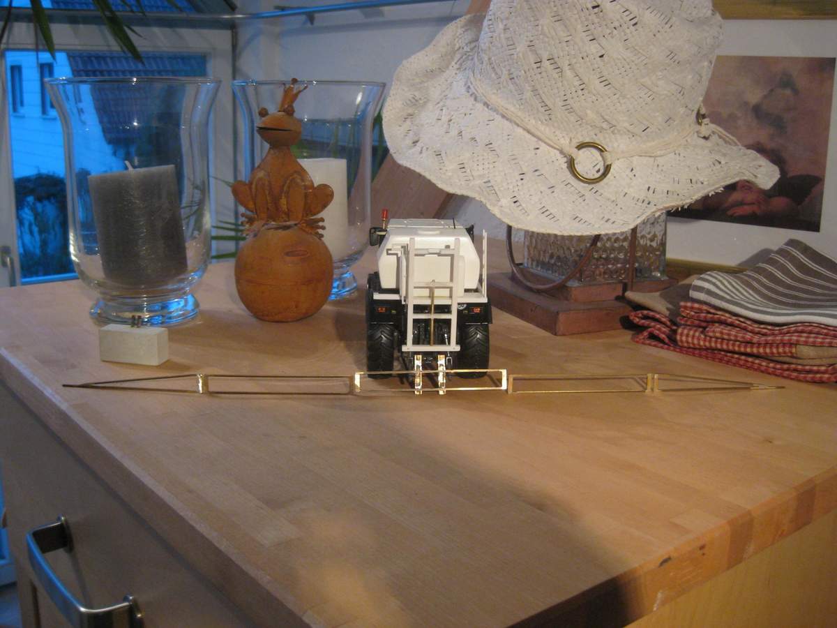 Heute wurde mit dem Spritzgestänge begonnen - es sind zwar erst mal nur die Rahmen aus Messing U-Profile, aber die Versteifungen werden wohl aus Gewichtsgründen aus Poly folgen....