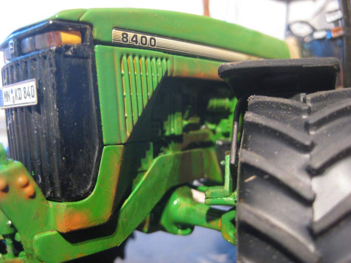Die Alterung sieht sehr gut aus, aber gefällt mir speziell an diesem Trecker nicht, unser hat am Grünen kein bisschen Rost( der Auspuff geht noch), aber der Umbau selber ist Hammer, ich möchte auch einen 8400 in Eu Version
