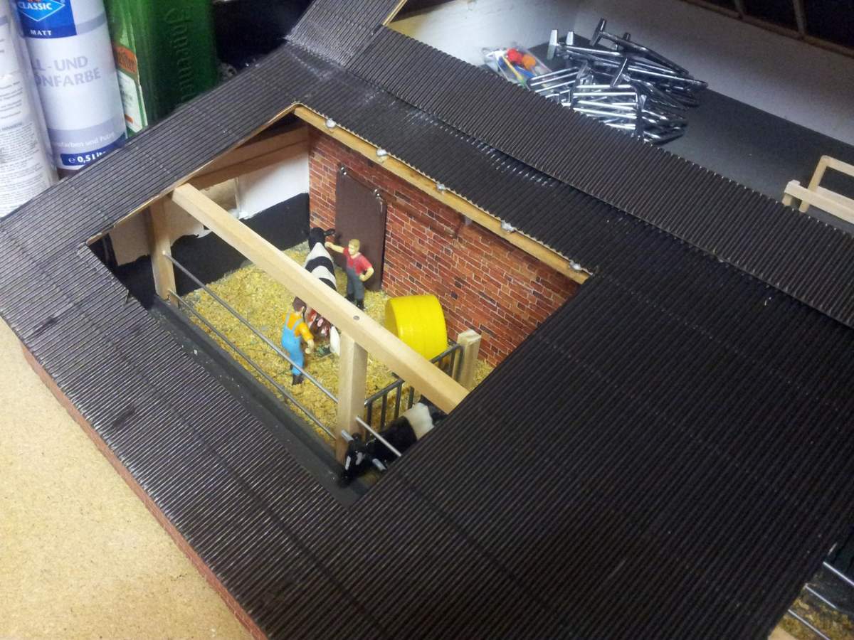So konnte vorhin die Gebäude austellen, leider ist mir die Reihenfolge der Fotos durcheinandergekommen, zwischendurch sind Fotos vom fast fertigen Kuhstall.