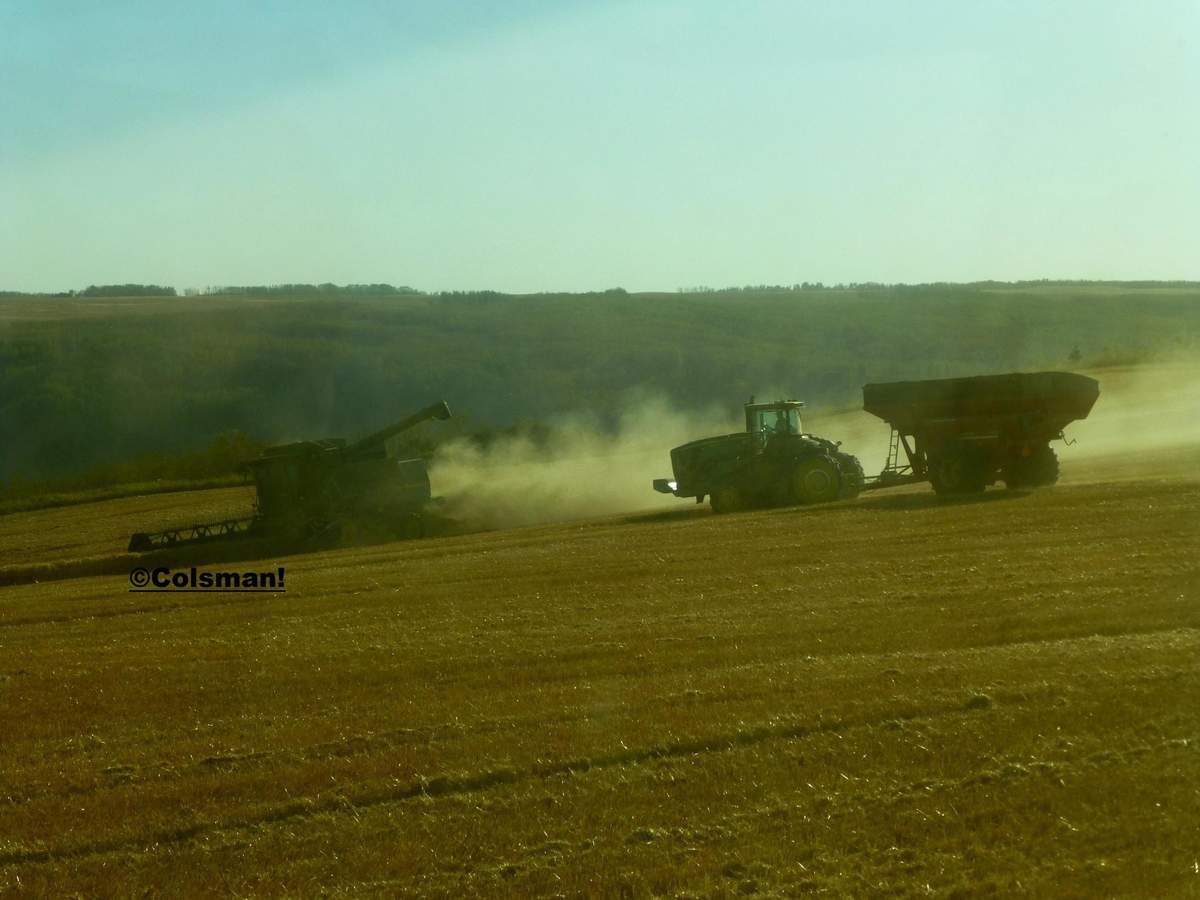 Schwaden bis zum Horizont, da muss schon überlegt werden wie gedroschen wird, um dem Überlader lange Wege zu ersparen...