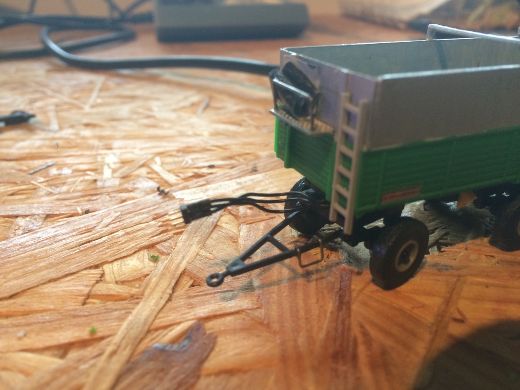 Den 6920s mit Anhänger hatte ich beleuchtet bei ebay erstanden. Am Kipper habe ich nun einen Stecker angebracht, so bekommt er den Saft über den Schlepper.