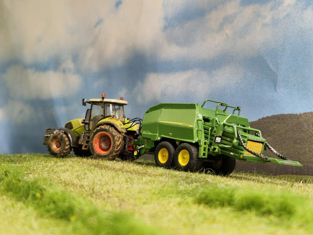 ) bin ich begeistert von der Presse. Egal, ob 1:32 oder 1:87. Der Massstab spielt da keine Rolle. Ich habe die Kombi in 1:32. Nur ist der Claas bei mir ein wenig sauberer.Tolles Modell! Mein Respekt dafür!