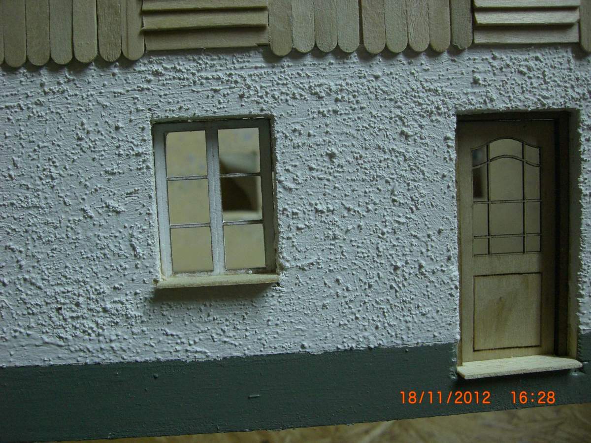 Der Putz ist einfach Polarweiß vom orangen Hörnchen mit Quarzsand vermischt. Das ganze mit Pinsel aufgetragen und abschliesend mit den Pinselspitzen getupft.