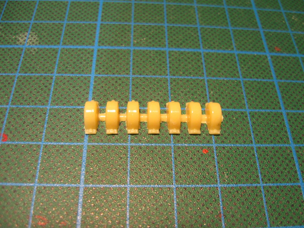 Das Fahrgestell ist mehrteilig und besteht aus Hart-PVC. Vorne bereits befestigt ist der Frontabschluss mit dem Zugmaul, Hinten sind bereits Teile des Krafthebers montiert, sowie gegossene Achstrichter mit Teilen der Kabinenbefestigung. Für sichtbare Details am Motor habe ich mich zu einer kleinen "Kopierrunde" entschieden und die Seiten des Schuco-Modells abgegossen. Was sich einfach anhört, ist in der realen Umsetzung etwas aufwändiger, da man hier die Form zum abgießen um das Schuco-Fahrgestell herumbauen muss... Letztlich ist es soweit geglückt, dass ich den oberen Teil mit Zylinderköpfen und Leitungen, sowie auf der gegenüberliegenden Seite, die charakteristische Lüfterreihe als jeweils ein komplettes Teil abgießen konnte.
