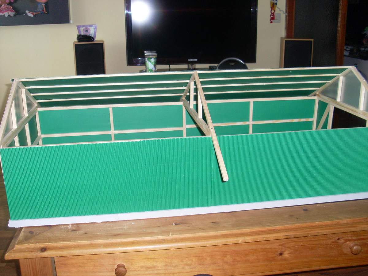 Mir gefällt deine Halle gut;) ,aber ich würde das Dach in Weiss oder einer ähnlichen Farbe machen dan sieht es nicht so einfarbig aus