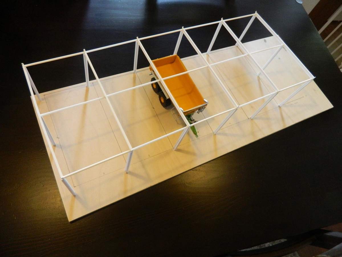 So endlich hab ich wieder baumaterial bekommen,und möchte mich hiermit auch direkt mal beim Architekturbedarf bedanken die alles da haben und auch schnell zusenden.Aber genug Werbung das Grundgerüst an Trägern steht,und wie vorher erwähnt hab ich die Halle um ein "gebund"erweitert.