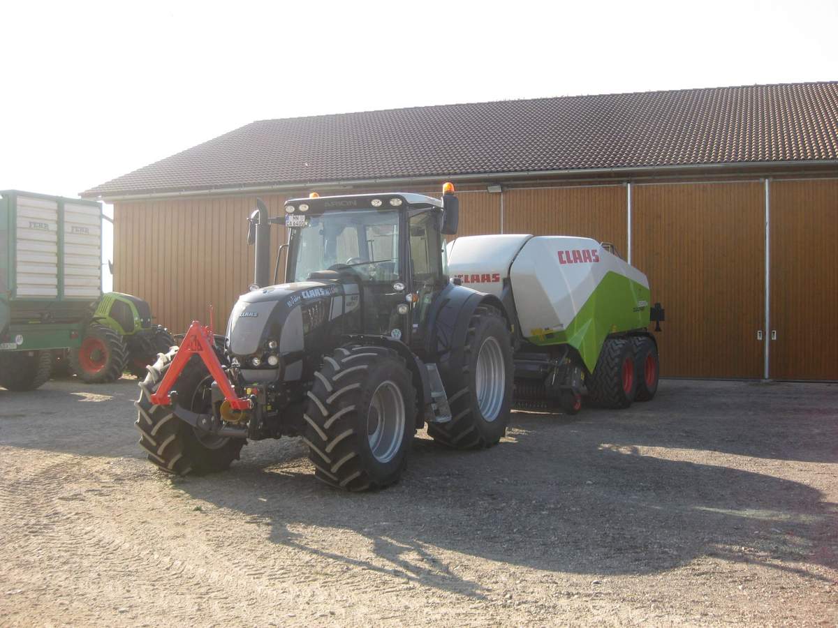 Claas Quadrant 1150RC mit Vorbauhäcksler und Ballensammelwagen