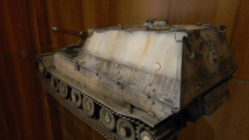 Das eine Bild zeigt ein Auftragsmodell eines SDKFZ Elefant in Wintertarnung,wo die Ketten usw noch verschlammt werden.