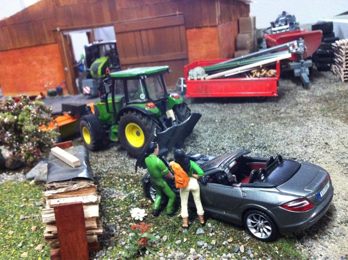 Das bemalte Dio (Haus mit Schuppen) ist in meiner Kindheit von meinem Vater gebaut wurden. Er hat es mir mal zu Weihnachten geschenkt, habe damals schon gerne mit siku gespielt habe den Hof wiedergefunden und ein bisschen aufgearbeitet.