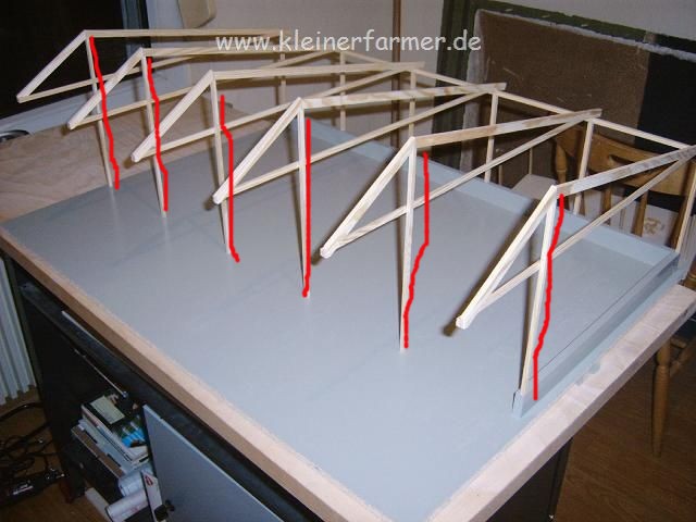 Hartmut: Ich schneide meine unbegradigten Bretter immer per Hand mit dem Cuttermesser aus Obstkisten, geht wunderbar, die sind ca. 2-3mm stark und lassen sich super schneiden, kannste unter Gebäudebau=>Holthof sehen. Die sind halt relativ unregelmäßig, allerdings würd ich sowas nicht an die Halle bauen.