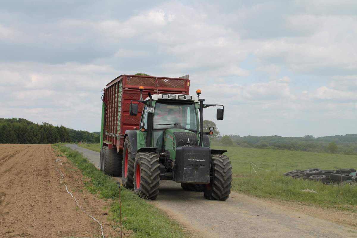 Der Fendt 828 gehört nun auch zum Fuhrpark der Firma Scheja, er wird nächstes Jahr an einem der zwei neuen Ladewagen, Pöttinger Jumbo 7210 Combiline laufen. Die Ladewagen werden den bisherigen Krone ZX 400 ersetzen.