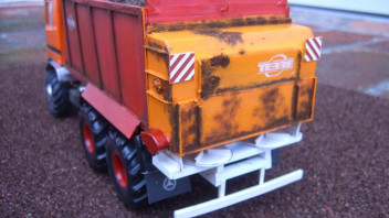 Hier geht es weiter uzw. Wurde das Aggregat hinten gemalert und gealtert Kotflügel hinten neu, neue Leuchten auf dem Fahrerhaus ,Mist modifiziert,Planeten vorne und streuerteller hinten neu.