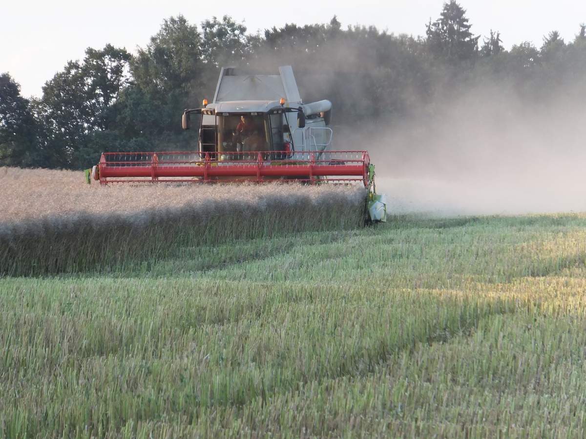 Angekommen setzte der Drescher gerade zum nächsten acker um: