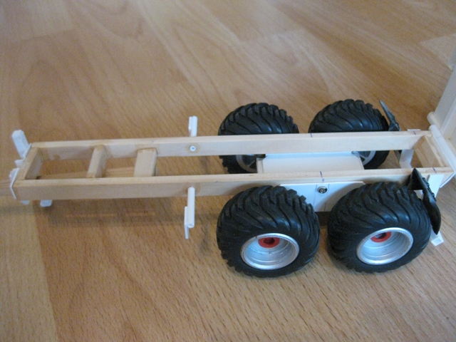 Er is bis auf ein paar Kleinigkeiten fertig. Was noch fehlt ist die Schlauchgadrobe an der deichsel und die Hydraulikzylinder an der Heckklappe. Außerdem sollen die Silageaufsetze noch Trapezblech oder so was in der Art, wie das auch im Original ist bekommen.