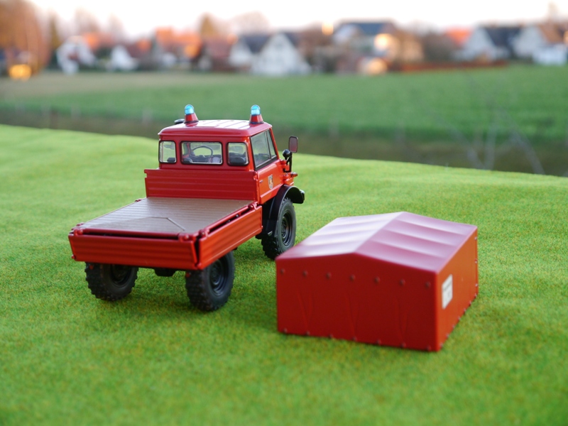 Als weiter Besonderheit und Änderung gegenüber der normalen Ganzstahlkabinen Version gibt es auf der Pritsche die von der Traktorado Version bekannte Plane in rot mit Feuerwehr Aufdruck.