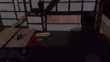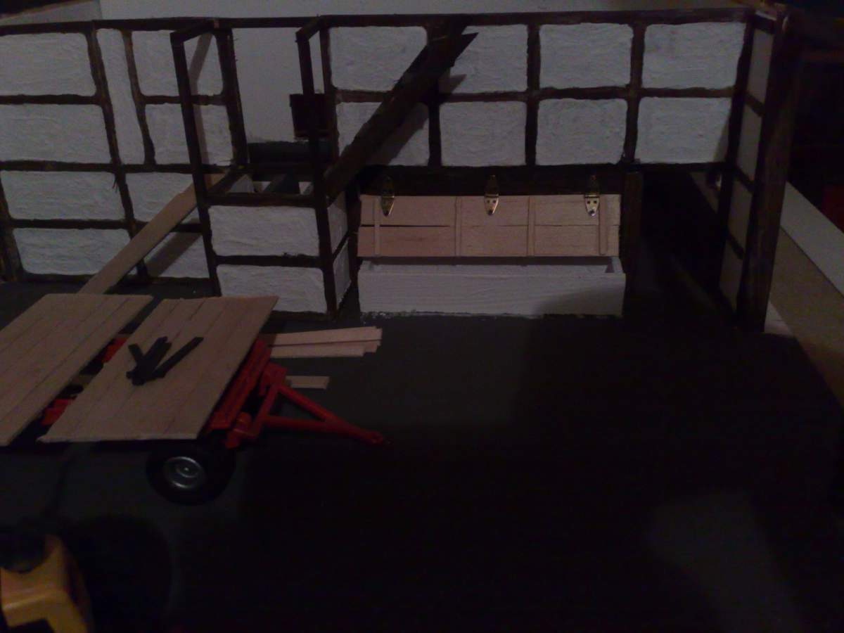 Freue mich wie immer über eure Meinung, aber nun genug der Worte, hier sind die Bilder:Auf dem Fahrgestell vom Kipper liegen bereits die beiden Torflügel für eines der Tore bereit. Die Bretter daneben sind für die Stalltür, die von der Tenne in den Stall führt.