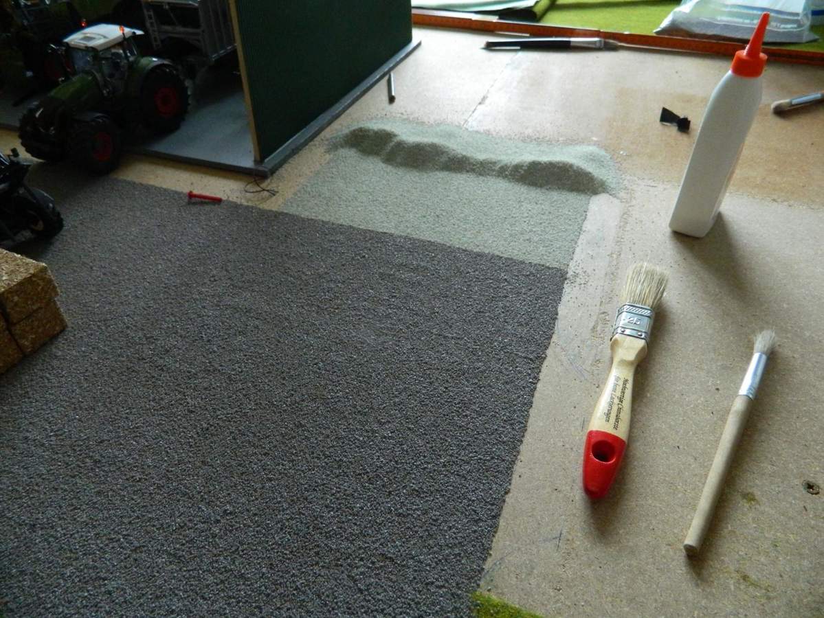Als nächstes werde ich den Seitenstreifen begrünen und danach das schwarze 40er Metallschmiergelpapier als Straße verlegen... hoffe es gefällt euch auch später ..gg, zwischendurch werde ich auch noch an meiner Siloplatte und an den Platz dafür arbeiten.Wie gefällt euch das?