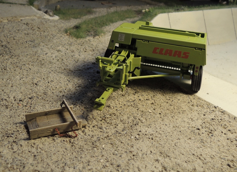 heute habe ich einen Miniumbau an meiner Markant 65 umgesetzt, der jedoch für den Gesamteindruck optische Auswirkungen hat. Zwar finde ich die Ballenschleuder schön gestaltet, aber ich kenne derartige Pressen eher mit einem einfachen "Ballenkanal". Daher habe ich die Schleuder entfernt und eine Verlängerung angebaut, um die Ballen am Boden ablegen zu können. Die Vorrichtung soll in 1:32 einen Eigenbau aus Holz darstellen.