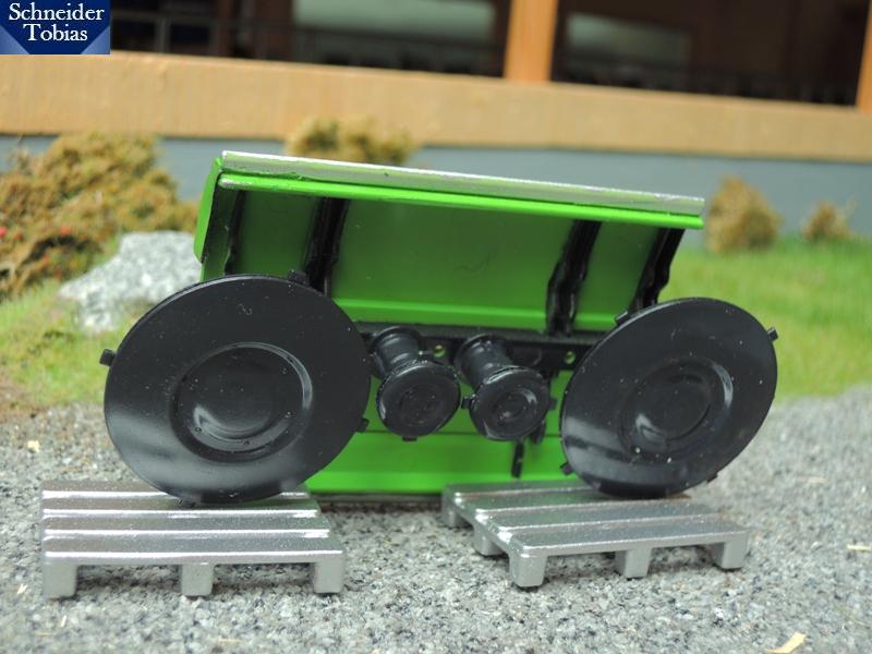 Problematisch ist hier allerdings, dass die Schutztücher - obwohl das Material sehr labbrig ist - kaum eine andere "Stellung" einnehmen. Um wenigstens bei der zurückgeklappten schwarzen Abdeckung ein realistischeres Bild zu erhalten, habe ich für die Transportstellung ein extriges solches Teil, bei dem das Schutztuch anders fällt. Ganz zufrieden bin ich damit noch nicht, aber ich finde es schon mal um ein ganzes Stück besser als ein im 90°-Winkel zur Abdeckung stehendes Schutztuch.