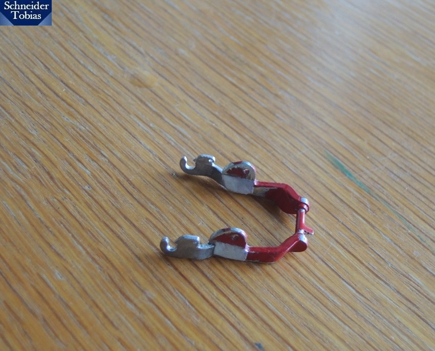 An der Klappe ist links und rechts ein um 90° gebogener Draht befestigt. In diese Haken rasten kleine Stäbe ein. Wahnsinnig viel hält die "Verriegelung" zwar nicht, aber für ein Standmodell reicht es.;)
